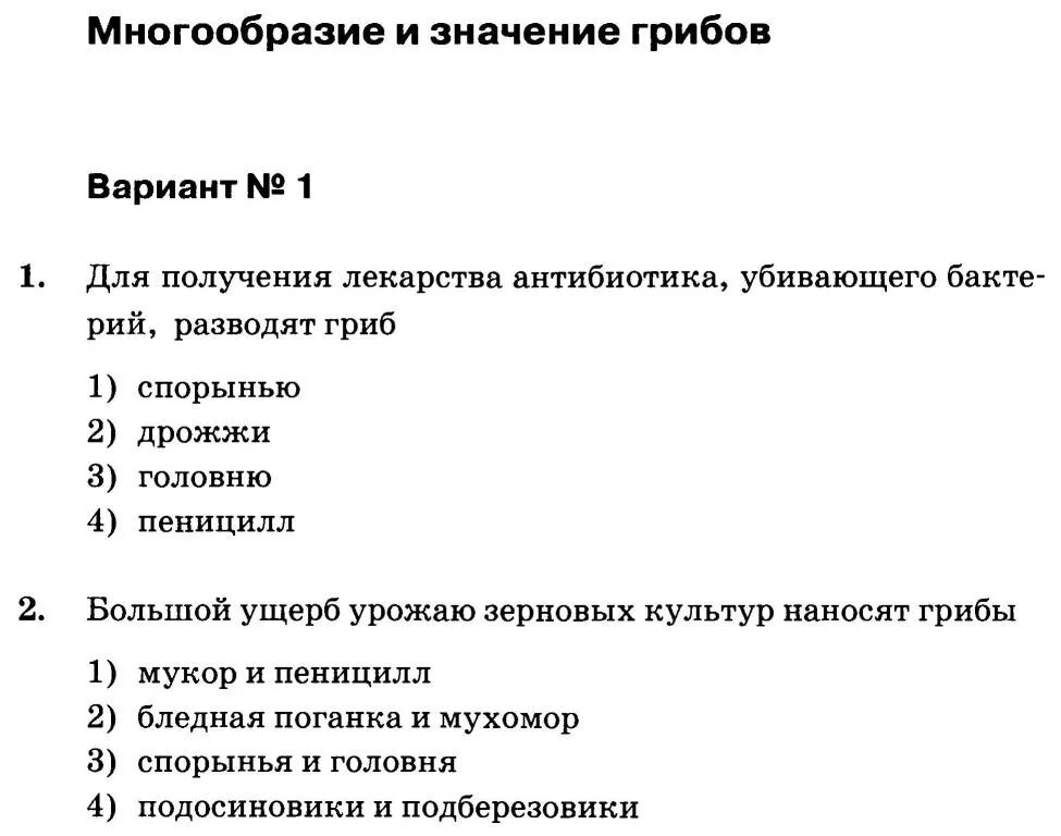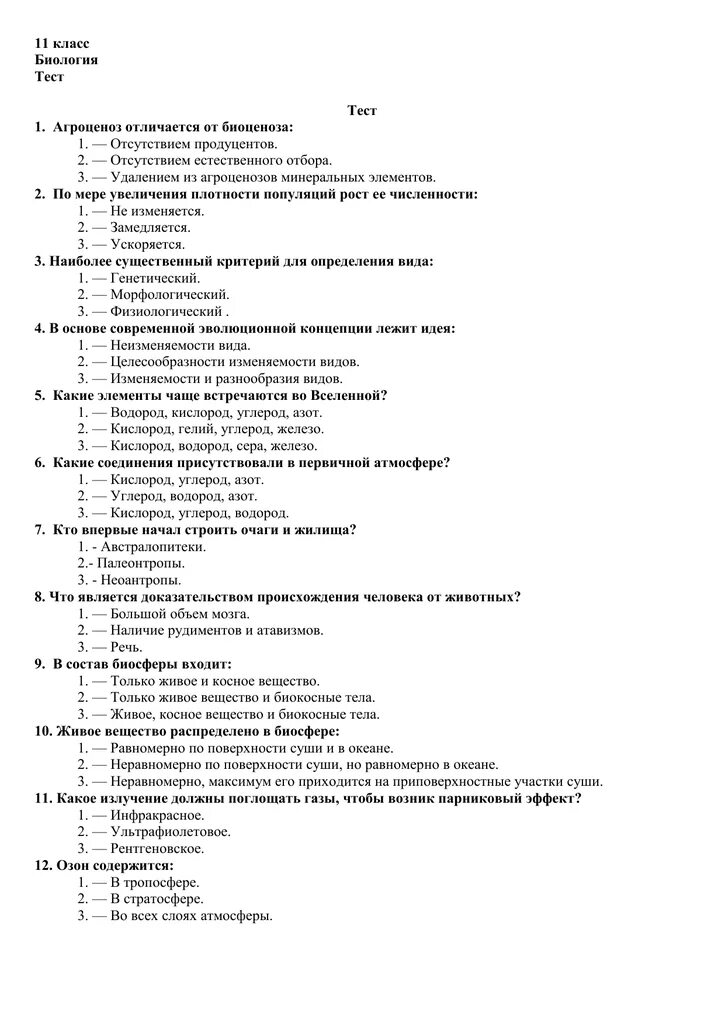 Виды контрольных работ по биологии